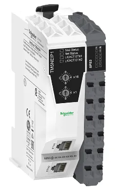 В конце прошлого года Schneider Electric объявили о запуске нового модуля подключения по единой шине TM3BCEIP, который позволяет создавать распределенные системы автоматизации по сети Ethernet (Ethernet/IP и Modbus TCP). Данный модуль полностью совместим с TM3 модулями расширения и может настраиваться, как и М262 контроллер в программном обеспечении EcoStruxure Machine Expert.