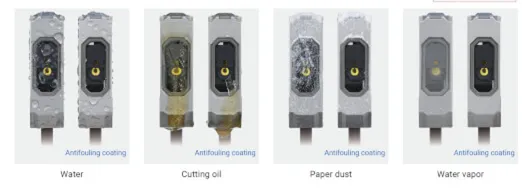 3. Первое в отрасли противообрастающее покрытие предотвращает загрязнение чувствительной поверхности датчика (патентная заявка). Противообрастающее покрытие на чувствительной поверхности серии E3AS предотвращает прилипание капель воды, масла и пыли к поверхности и запотевание объектива. Это снижает частоту ложных срабатываний и очистки.