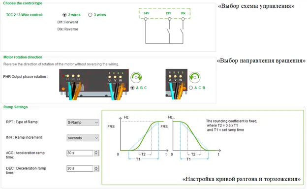 Рисунок 2. Примеры инструментов визуализации настройки ПЧ Altivar Process ATV600, ATV900 и Altivar Machine ATV340