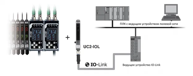 Передача по IO-Link через контроллер и полевые сети управляющих данных и переменных данных подключенных датчиков