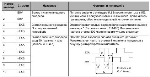 Использование сигнала обратной связи от внешнего энкодера, установленного непосредственно на исполнительном органе, позволяет избежать рассогласования между заданием и реальным положением и скоростью конечного механизма. Основными причинами рассогласования в механизмах могут стать: люфты в механике, неизбежные погрешности на длине шариково-винтовой пары, температурные сдвиги, смещение продукта и т.п.