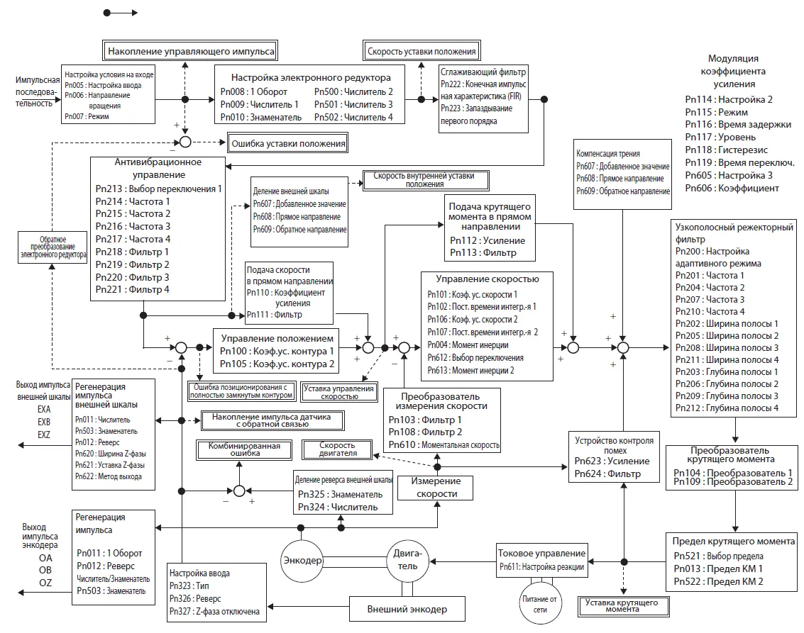При работе в полностью замкнутом контуре параметр Pn008 устанавливается равным 0 (по умолчанию = 10000), в дальнейшем настраиваются только коэффициенты электронного редуктора Pn009 и Pn010;