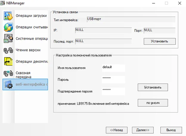 Имя пользователя и пароль для доступа к панели в нашем демо-проекте оставим стандартными: default. Для включения веб интерфейса необходимо добавить компонент «Установка состояния бита», который будет записывать бит данных в адрес LB9175. Если в данной ячейке памяти будет хранится «1» - веб-интерфейс включен, если «0» - выключен (Рис. 15).