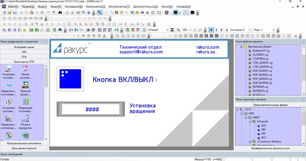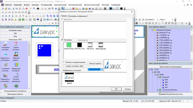 Двойным щелчком по главному экрану откроем меню и установим белый цвет фона. Загрузим изображения фирменного стиля моего университета с помощью меню: Рисование → Новый графический объект. Укажем тип изображения: растровый. Добавим его в проект при помощи функционального компонента: растровый объект (Рис. 10).