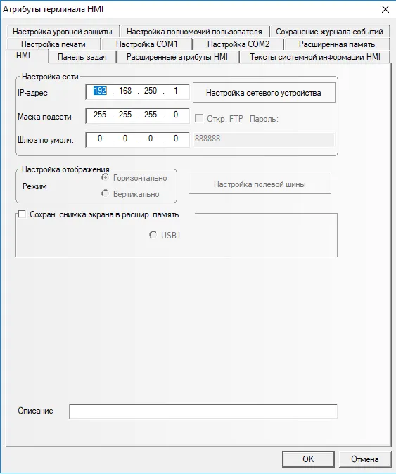 В параметрах HMI указываем: IP-адрес: 192.168.250.1; Маска подсети: 255.255.255.0 (Рис. 2)