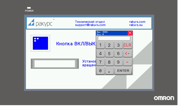 В верней панели ПО NB-Designer перейдем: Инструменты → Имитация в автономном режиме (Рис 13). При нажатии компонента «Ввод числа» появится экранная клавиатура для ввода частоты вращения двигателя.